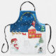 CHRISTMAS APRON DESIGN- HOLIDAY SNOW, LIGHTS, SNOWMAN, SANTA GOING DOWN THE CHIMNEY AND REINDEERS ARE PATIENTLY WAITING.