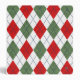 Christmas argyle red and green stitched print. White background. Fun holiday pattern and color.
