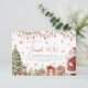 Beautiful Christmas baby shower thank you card featuring watercolor Santa, a decorated Christmas tree, holiday lights, gifts, and snowflakes. Perfect for thanking guests for their love, gifts, and support during your Merry Little Baby Shower or winter baby sprinkle. Coordinates with matching invitations, diaper raffle cards, books for baby inserts, table signs, and full Christmas shower décor. A festive and heartwarming way to send appreciation this holiday season.