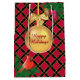 Christmas golden ball, pine cones and cardinal bird on black, golden and red checkered background Gify Bag. There is more to this design than meets the eye.