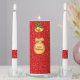 Christmas Ball & Golden Bells on Glittering Red Unity Candle Set