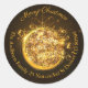 Add a beautiful holiday detail to your holiday cards, and other correspondence during the Christmas season with this festive round return address envelope seal. An elegant gold glitter Christmas bauble accents the center of the design on a warm dark background for a contrast-rich text.