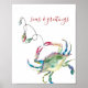Add a splash of seaside cheer to your holidays with this watercolor art poster custom print featuring a festive blue crab decked out in Christmas lights.