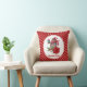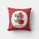 Cute Christmas bear with a scarf, Christmas present, and poinsettia. The background is red with white diagonal stripes. Custom your name