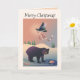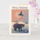 A snowy forest with a friendly bear and turtle and a flying magpie carrying a ribbon of holiday glowing lights. Original art ©️TRForsman for SpaceTempoDesign. Also available on invitations and easel-printed mantle decor stand-up posters for holiday decorating.