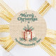 Christmas beige burlap gift box classic round sticker