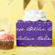 Believe text with snowflakes on purple background.