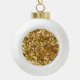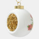This traditional Christmas ball ornament has a front center round glitter image shown in gold color. On backside of ball ornament has an image of red poinsettias interlaced with golden bells. Customize this item with this template or buy as shown. Ball ornament in white only.