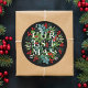CHRISTMAS Berries Greenery Holiday Black Classic Round Sticker