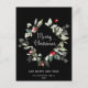 This Minimalistic Christmas greeting card features a Christmas botanical frame with red berries, lush greenery leaves and light green twigs on the simple black background. Please your loved ones with this stylish Christmas card.