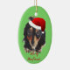 Christmas Black Tan Long Haired Doxie Santa Hat Ceramic Ornament