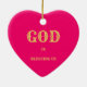 Meaningful Christmas blessings heart ornament with God is blessing us text on magenta red background. Blessing us text can be personalized. Count your blessings!