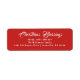 White text on bright red background will really stand out on your white envelopes. Merry Christmas is written in a large decorative script. Peace, joy and love is just below, because well these are a few of my favorite blessings. Peace, Love and Joy can be changed to your favorite seasonal blessings. All the text is easily customized. Your name and address are below.