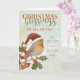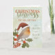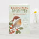 A festive holiday card to group featuring a sweet robin in a Santa hat perched among holly berries, paired with the joyful message, “Let Heaven and Nature Sing!”