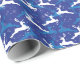 Christmas Blue and White Jumping Deer Wrapping Paper