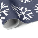 A pattern of white snowflakes is on this dark blue tissue paper.
