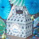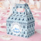 Customizable Merry Christmas favor box (gable) in blue. Your name and message on beautiful Lapland style pattern in blue with transparent background (here pale blue background). You can easily change background color and text (font, size, color and position) by clicking the customize button..Other models are available. Matching personalized Christmas other craft products, Paper napkin, paper plate and more...