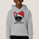 Join in the festive fun with this cute Christmas hoodie. The design features a blue colored french bulldog wearing a red Santa hat and aviator sunglasses with the wording "Santa Paws" printed underneath.