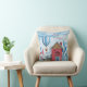 Christmas Blue & Red Winter Village & Animals Throw Pillow
