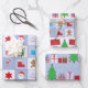 A wrapping paper sheet set built with Christmas square patterns on blue. Customize the pattern sizes among other options.