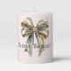 Christmas Blush Pink Rustic Green Gold Bow Pillar Candle