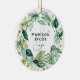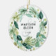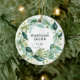 Christmas Boho Greenery Wreath Names Couple Photo Ceramic Ornament