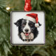 CHRISTMAS BORDER COLLIE DOG WITH SANTA HAT METAL ORNAMENT