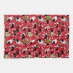 Cute Border Collie dogs in festive holiday outfits wearing Santa hats, antlers, strings of lights and polka dot and argyle sweaters on a red background with scattered ornaments.
