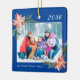 Christmas Botanical Family Photo Blue Ceramic Ornament