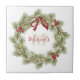 Christmas Botanical Wreath Red Holly Monogram Ceramic Tile