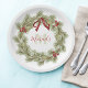 Christmas Botanical Wreath Red Holly Monogram Paper Plates