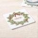 Christmas Botanical Wreath Red Holly Monogram Square Paper Coaster
