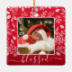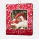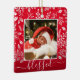 Your favorite photo on white leaves, berries and dots and ANY COLOR background (we show red.) CHANGE the word BLESSED to anything! TIP: Put your text between the squares to retain the text swashes - upload a high resolution, photo cropped to square shape. This Christmas ornament makes a memorable gift for family and friends or create just for yourself - great party favors, too! Double-sided - add any info on the back.