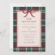 Christmas Bow Burgundy Dark Green Plaid Wedding Invitation