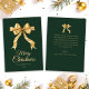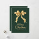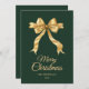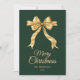 Christmas Bow Elegant Minimalist Green Gold Holiday Card