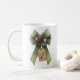 "Celebrate the holidays with this charming Christmas Bow Mug, featuring a vibrant green festive bow and a gift tag that can be personalized with your name. Perfect for sipping cocoa, coffee, or tea by the fire, it adds a personal and festive touch to your holiday mornings. Make your mornings merry and bright with a mug that’s uniquely yours this Christmas!"