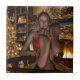Great 3D Christmas design. Pretty blonde with bare feet up and facing you as she relaxes by the fire with a decorated tree.