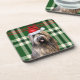 Christmas Briard Shepherd Dog Green Plaid Holiday Beverage Coaster