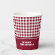 Get ready for Christmas party with these pretty buffalo plaid red and white Paper Cups featuring simple and elegant design. Background in trendy burgundy shade of red makes white customizable Xmas greeting text really pop out. Use the customize it button and replace the sample greeting with your own text, name or monogram to create personalized paper cups