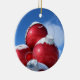 High quality photo of red bulb decorations with snow and blue sky. Photo placed on ornament for your tree.