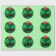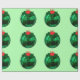 Christmas Bulb With Holly on Green Wrapping Paper