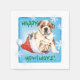 Celebrate the holiday season with a cute Bulldog puppy sitting in a Santa hat amid snowflakes and the words, Happy Howlidays!