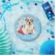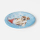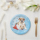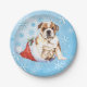 Celebrate the holiday season with a cute Bulldog puppy sitting in a Santa hat amid snowflakes. Happy Howlidays!