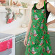 Festive holiday apron makes Christmas cooking all the more fun! The pattern features red bullfinch birds with pine cones and evergreen branches on green background.