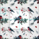 Modern watercolors Christmas pattern. Christmas holly and bullfinch with pinecones in traditional Christmas colors. Red green white and black.