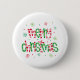 This Christmas button pin is shown with a festive holiday Merry Christmas in a candy stripes and snowflakes print.