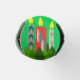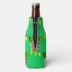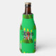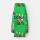 This bottle cooler has a Christmas design of candles made of rectangles decorated with stars, ovals, or diamonds with trees grouped around the bottom.