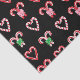 This cute tissue paper is versatile and can be used for giving gifts or art and craft projects. The design features festive striped candy canes on a black background.