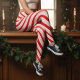 Looking for something comfy to wear Christmas morning? These cute leggings with diagonal stripes in candy cane colors of red, white and green are the perfect choice. Search ID259 to see other products with this pattern.