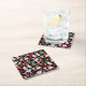 This cute coaster is versatile and can be used for giving gifts or art and craft projects. The design features Christmas trees, hot cocoa, candy canes, sweets and cakes on a black background.